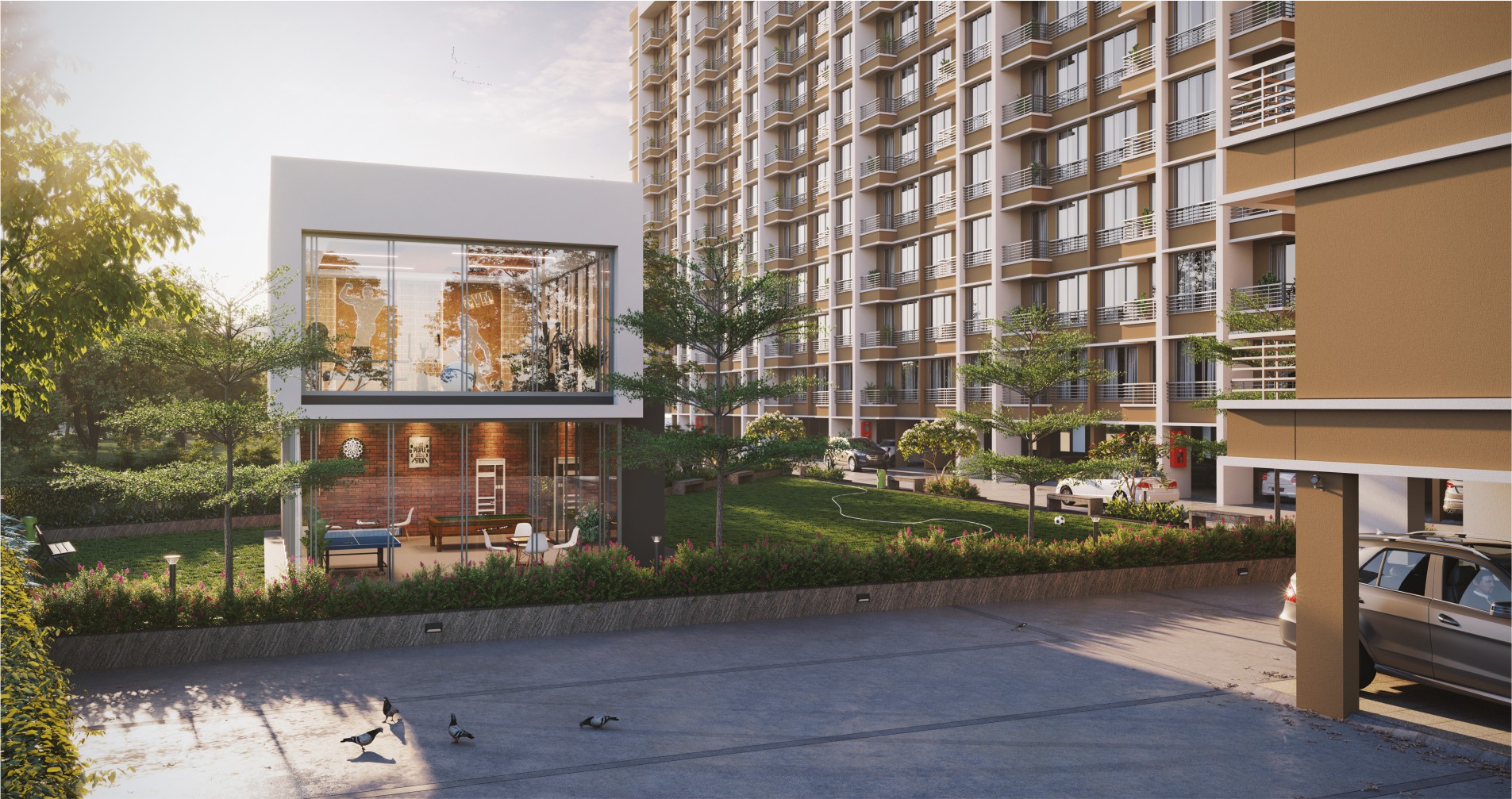 The 1BHK flats are smartly designed and offer flexibility for different furniture layouts – whether you’re a couple or a couple with one or two kids, you can design the flat as per your requirements. All the 1BHK flats have large windows offering good views and plenty of sunlight and ventilation.